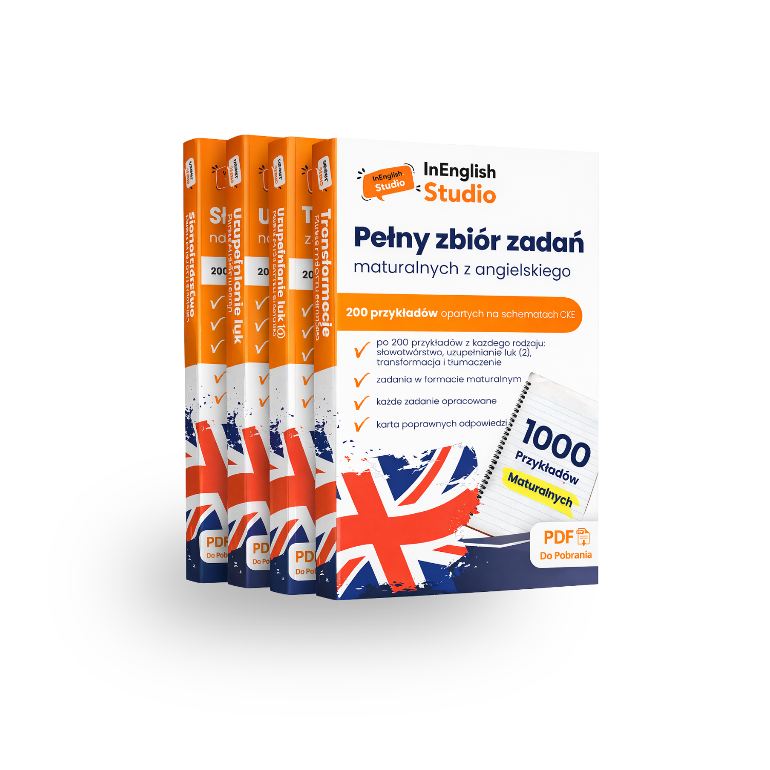 ✔ po 200 zadań z każdego typu: słowotwórstwo, uzupełnianie luk, A–D, transformacje i tłumaczenia